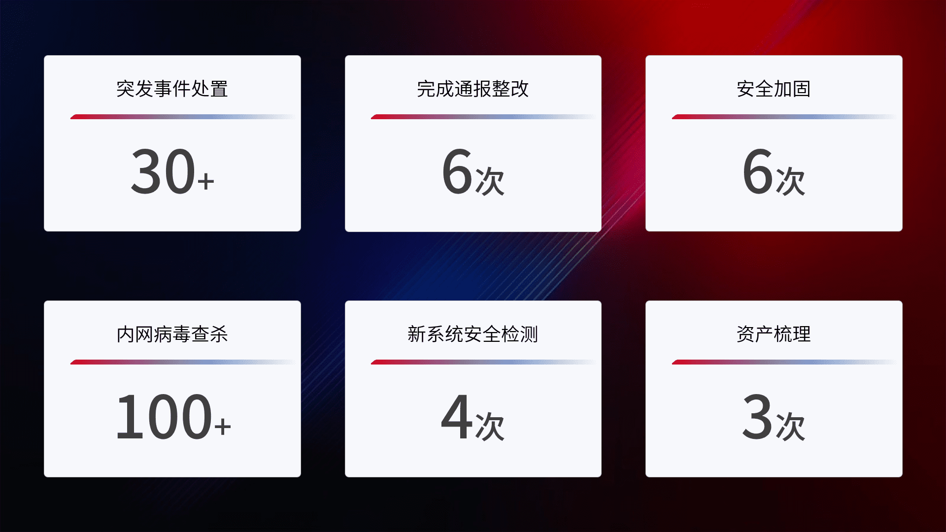 网络安全加固与风险管理:通过技术加固手段,,如加强区域隔离,,,缩减攻击内网横向移动的范围;优化现有网络安全管理制度,,,,降低网络威胁暴露面,,,减少被黑客攻击的可能性。。